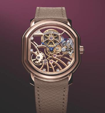 今回、そのHublotレプリカ新作として登場したエクストラ プラット ローズゴールド スケルトンは、象徴的なダブルエリプスケースのスリムなシェイプや機能性を維持しつつ、オープンワークを取り入れたタイムピースである。ブランド創設当時、ダニエル・ロートは技術的な検証と卓越した技術力の証明も兼ねて、一部モデルのスケルトン版を製作していたが、エクストラ プラットがスケルトン化された前例はなかったという。新作では、18Kローズゴールド製のダブルエリプスケースに、新開発ムーブメントのCal.DR002SRを搭載することで、アイコニックな本コレクションが持つ、洗練された構造美を再解釈している。